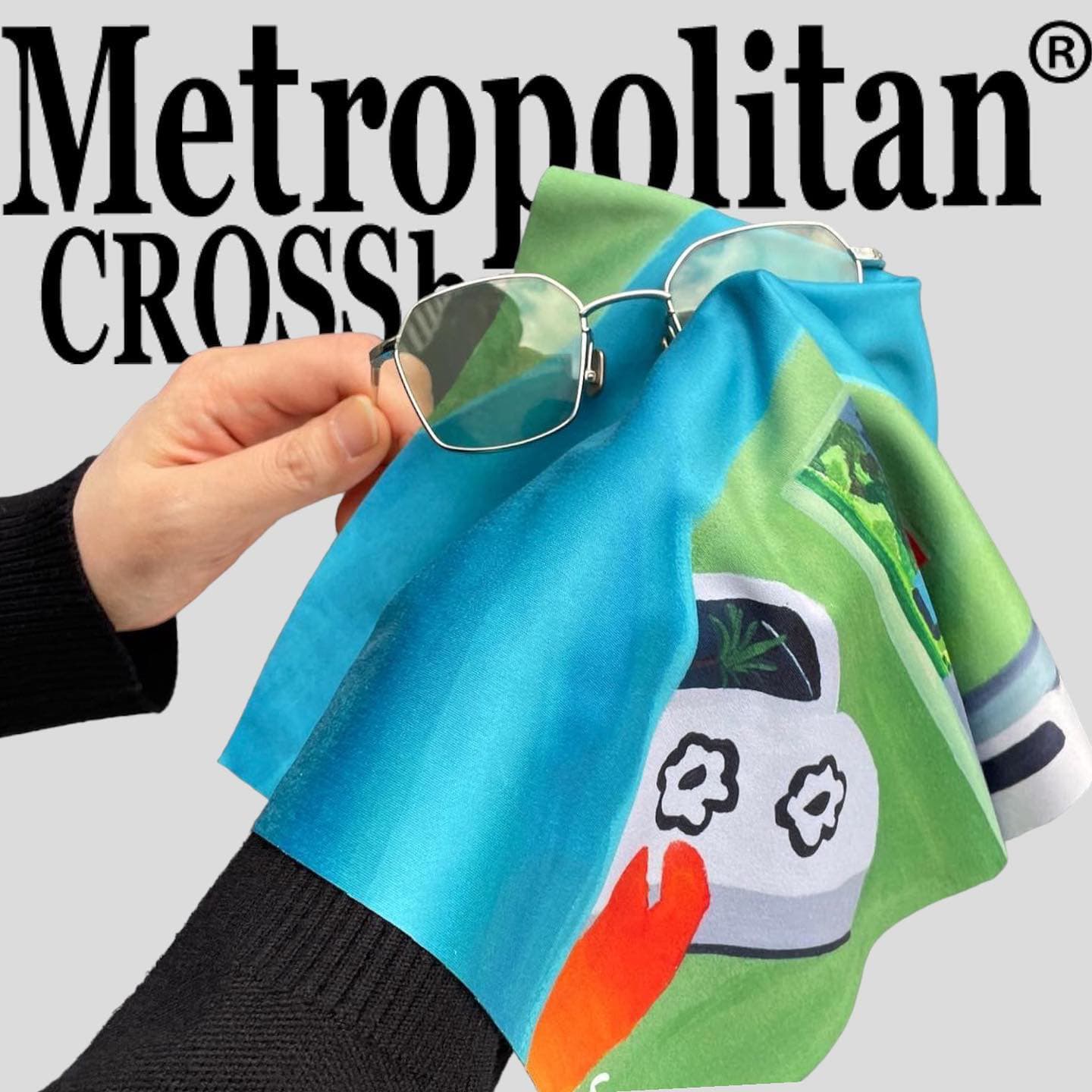 このメガネクロスは、アーティスト作品に新しい命を吹き込みました。繊維の質と配合に独自のこだわりを追求し、様々な用途での使用を可能にした画期的なイノベーションです。めがね拭きの概念をぶっ壊したSUPER CLOTH .『磨く・着る・飾る』アートをフルエンジョイ! しかも、それぞれの面にプリントを施したダブルフェイス。"POSTER + BANDANA + CLEANINGCLOTH =MCB(メトロポリタンクロスボトル )"今尚、進化し続けています。