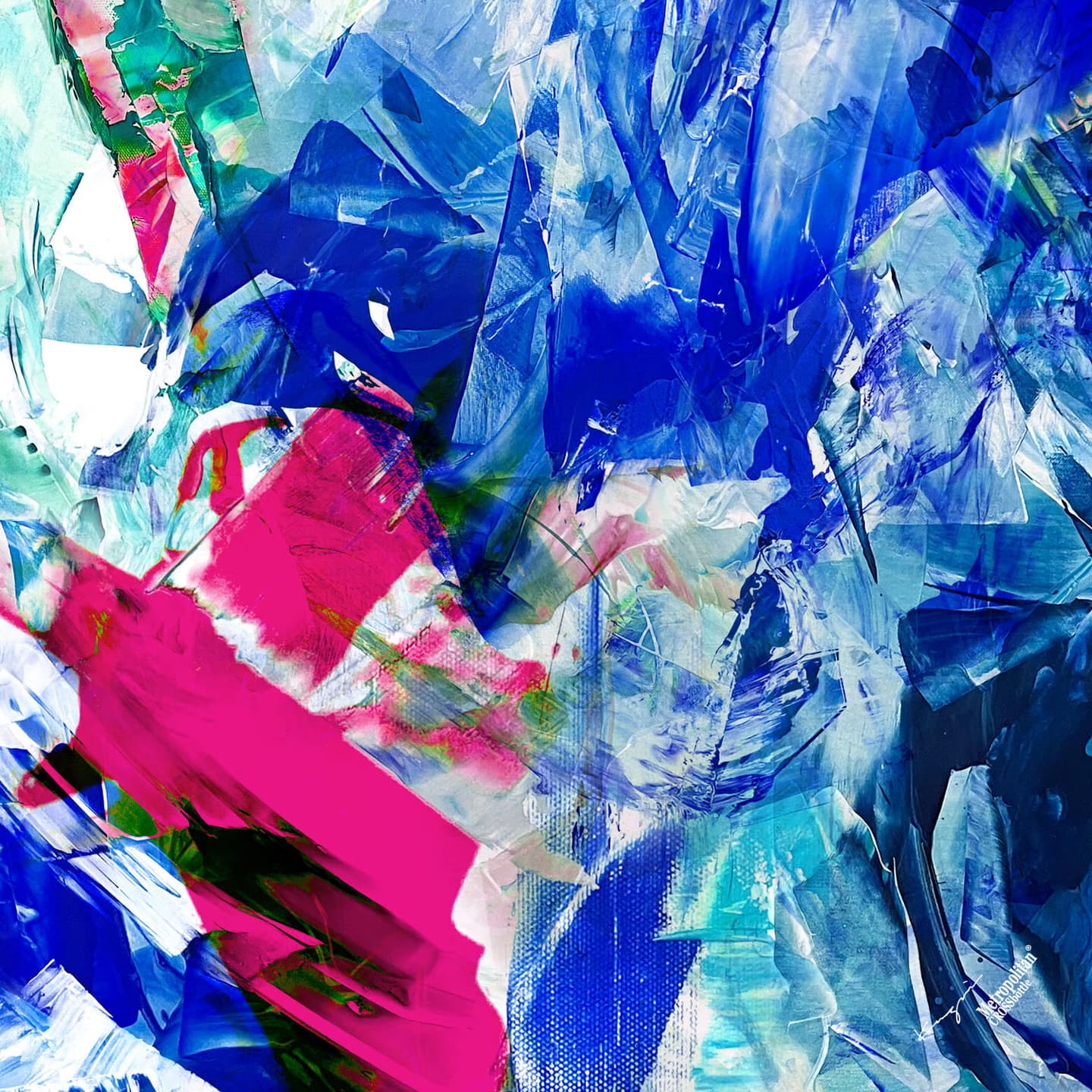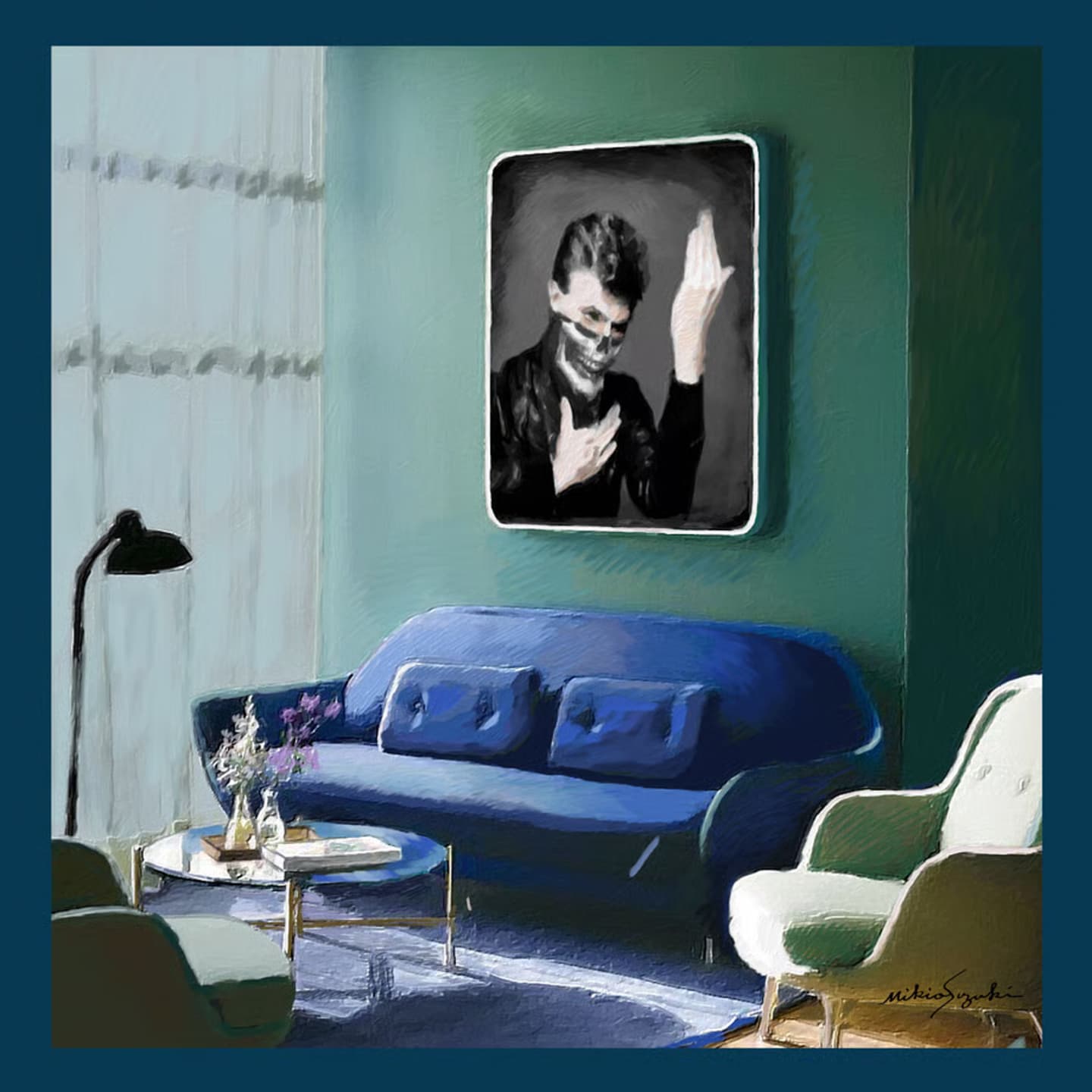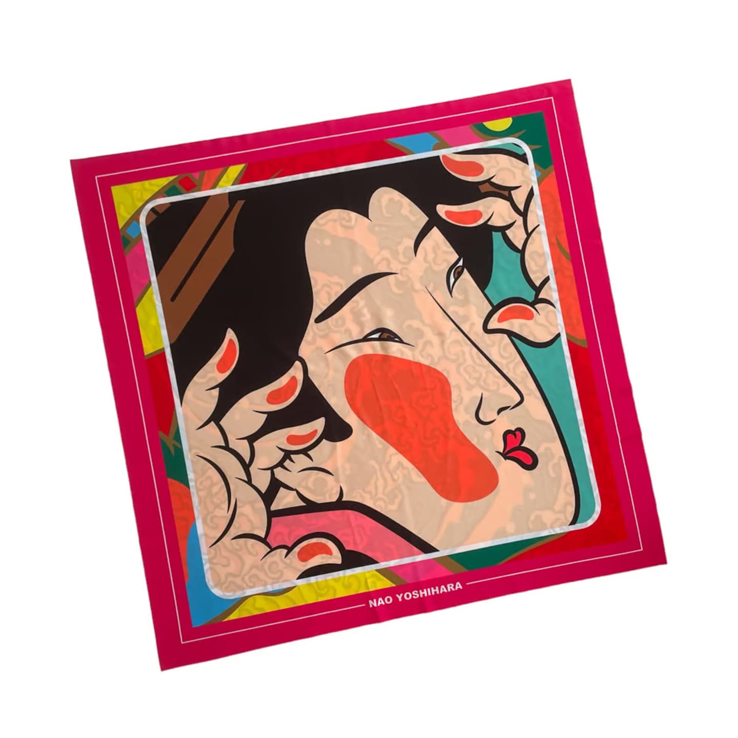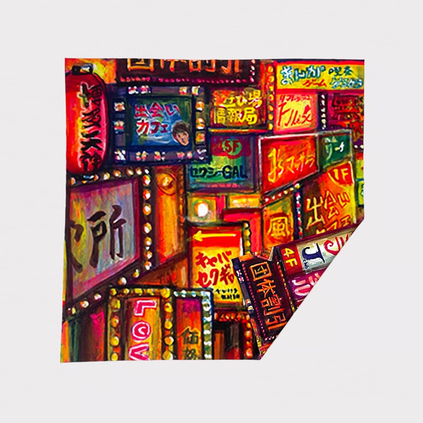 この布地には表面も裏面もありません。ダブルフェイスで、二面でアートを楽しめます。アート(デザイン)の原画を忠実に表現するために最高峰の印刷技術により、鮮明な色合いの表現に成功しております。紙とは違う質感がまた特別な感覚でアートの世界観を感じられます。四つ角を引っ張りスカーフアートのように飾るのもいいですし、額装もオススメします。