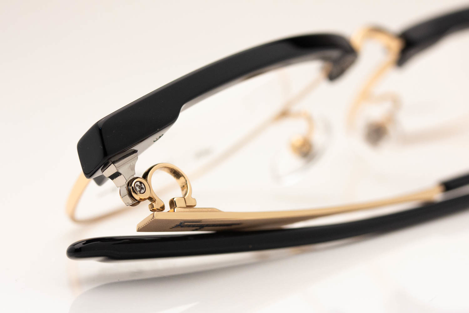 フォーナインズ王道のメタルブロウを、FERRAGAMOのタイムレスな感度で完成させたシャープなスタイル。これまでのフォーナインズファンをもさらに魅了する、進化したメタルブロウのハイエンド・スタイルです。パーツを細分化、再構築することで、理想のフレームバランスが体現されております。そして、フェラガモ独自のパーツのガンチーニヒンジ。 フォーナインズの代名詞とも言える逆Rヒンジをベースにし、 これまでにない快適な掛け心地を生み出しました。 フェラガモとフォーナインズの品質、革新性、卓越性を象徴するパーツが、上質でラグジュアリーなかけ心地を提供いたします。