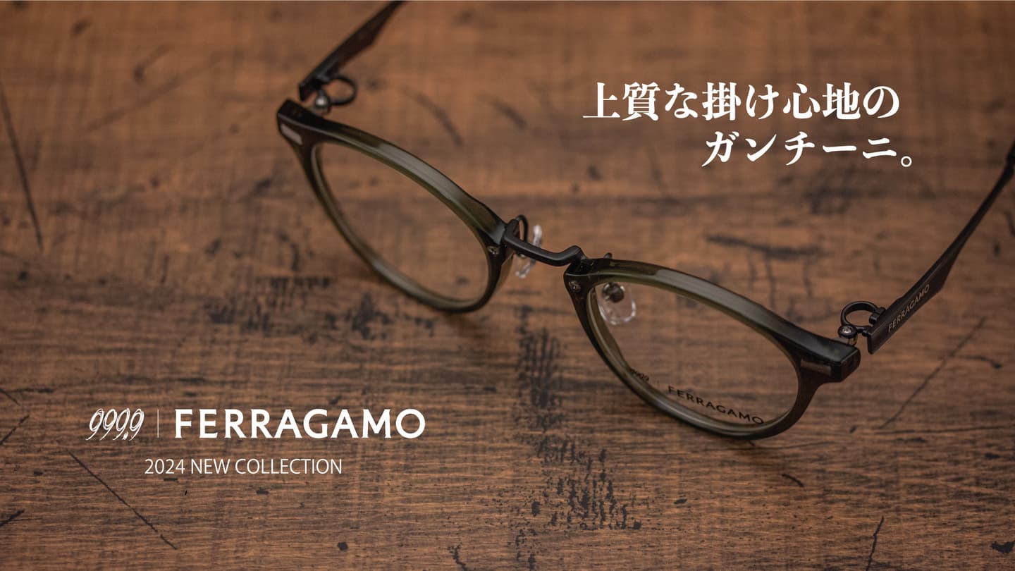 日本のアイウェアブランド「999.9」と「フェラガモ」のコラボレーション第2弾となるコレクション。シリーズ初となるレディースコレクションが登場いたしました。