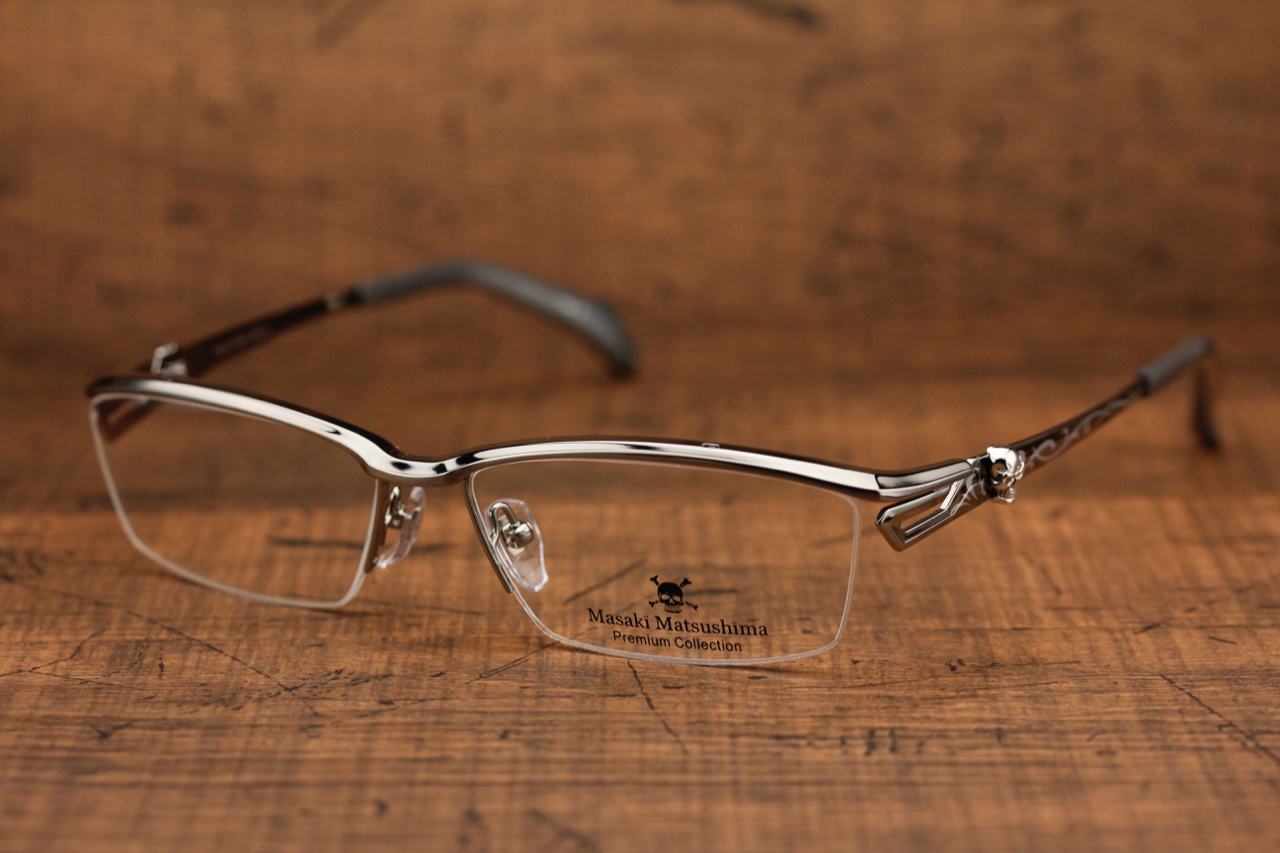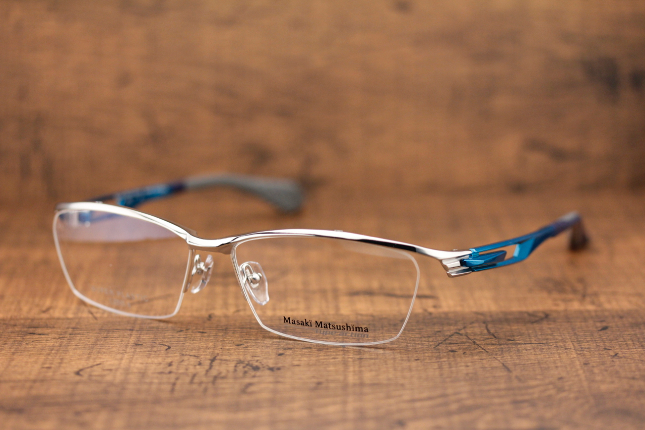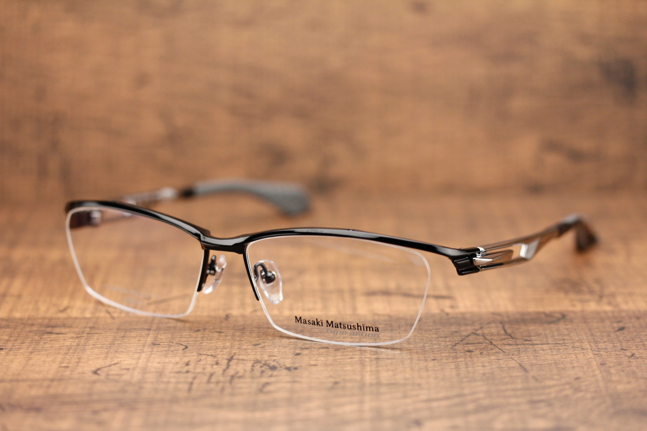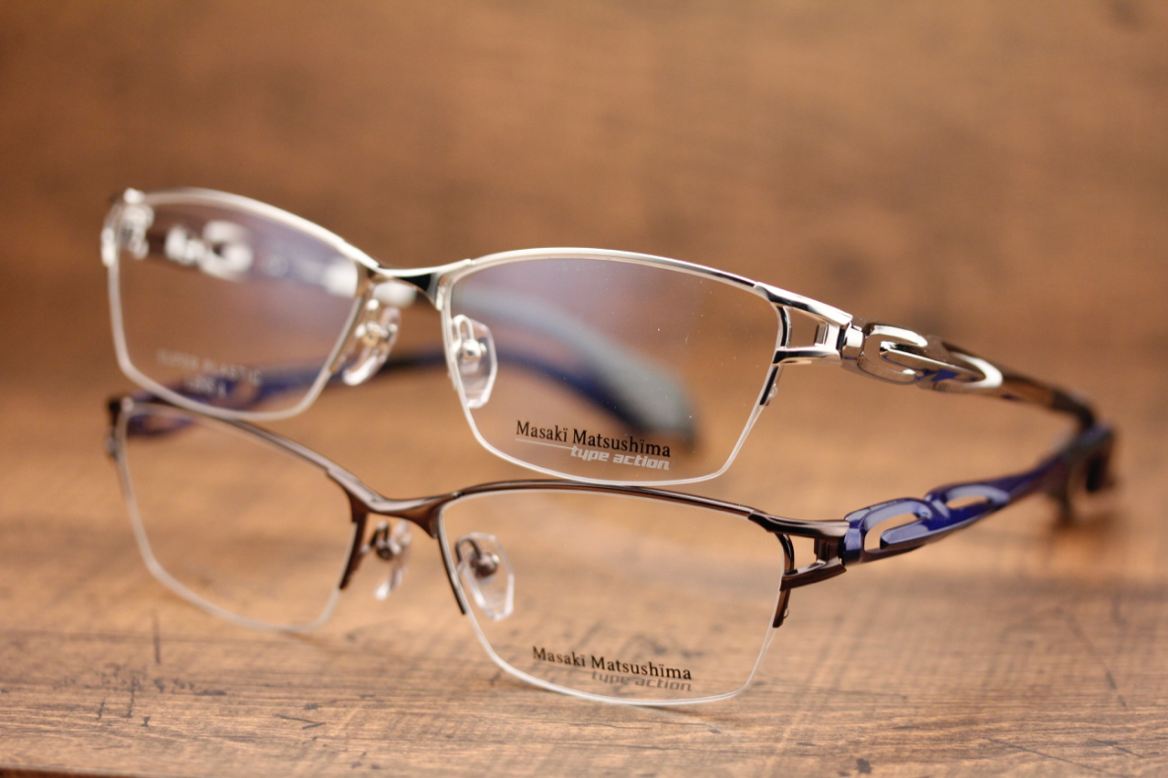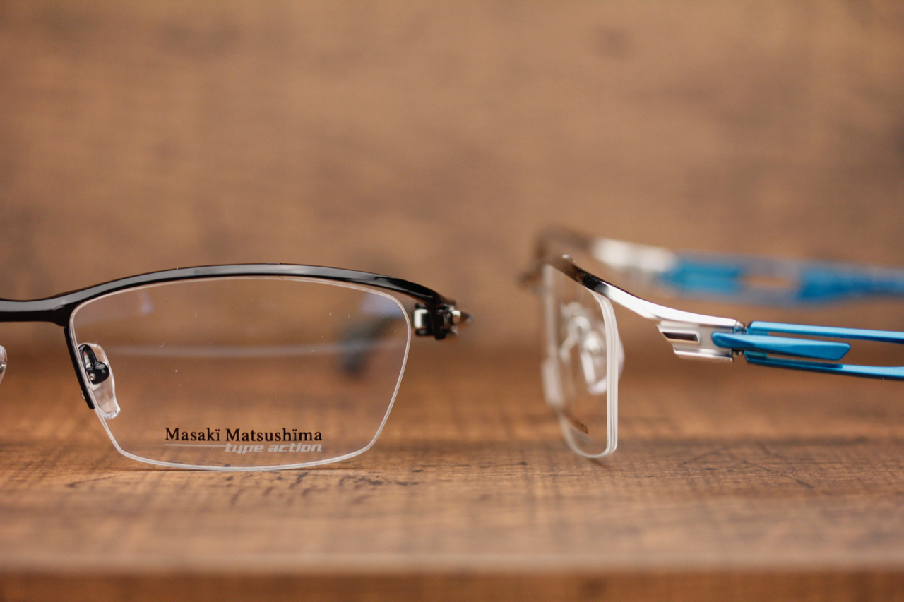 こちらのモデルMFS-123とMFS-124はフロント(前枠)がチタン製、ツル(テンプル)が超軽量樹脂製のハイブリットスタイル。
