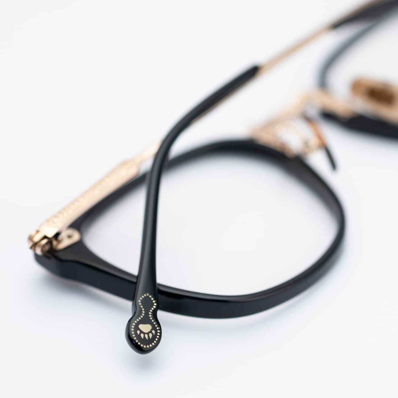 1980年代に台頭したウェリントンシェイプを、内藤熊八らしく繊細に再構築した一本です。チタン製のメタルパーツには、職人技が光る美しい彫金模様が施され、日本の美意識を感じさせる上品な仕上がりに。さらに、ブリッジには雄大な富士山をモチーフにした彫金があしらわれており、細部にまでこだわったデザインが魅力です。クラシックな雰囲気を持ちながらも、軽量で掛け心地にも優れたバランスの取れた一本となっています。