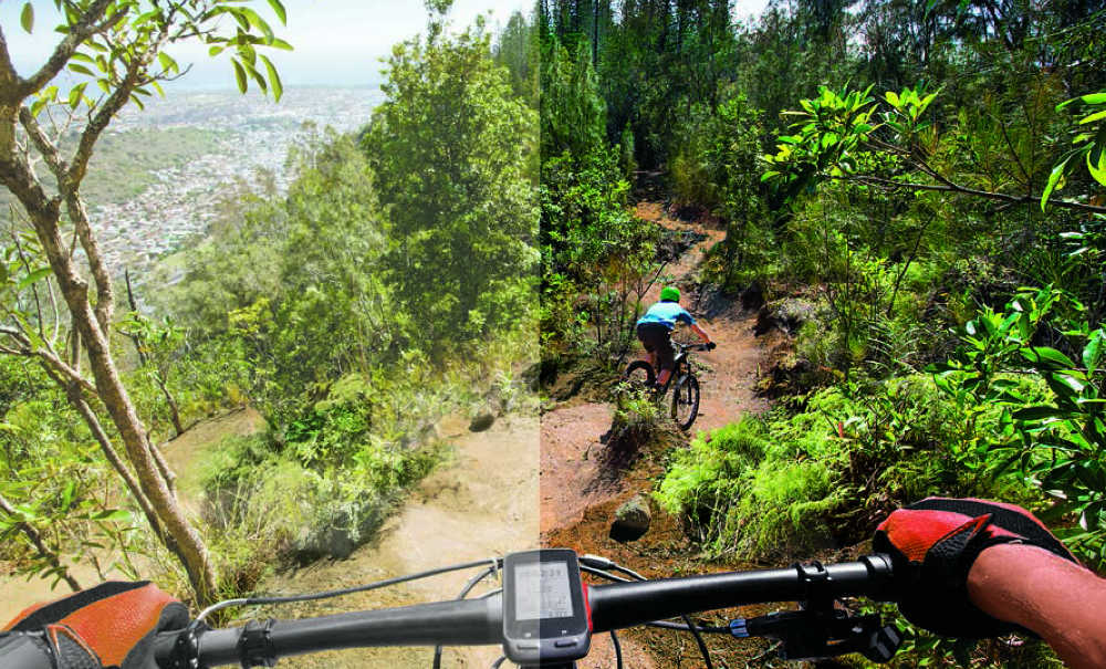 赤系や茶系の色を引き立たせる処理が施されているため、日影や明るい光の中で、砂、岩、草木の根、その他の変化をすばやく見つけることができます。日陰になった道を走り抜けるときも、日差しの明るい岩場を走り下りるときも、コントラストが強化されるため、最高のパフォーマンスを発揮し、安全性を向上できるほか、草木の色が鮮やかに見えるので、トレイルでの体験がいっそう楽しくなります。
