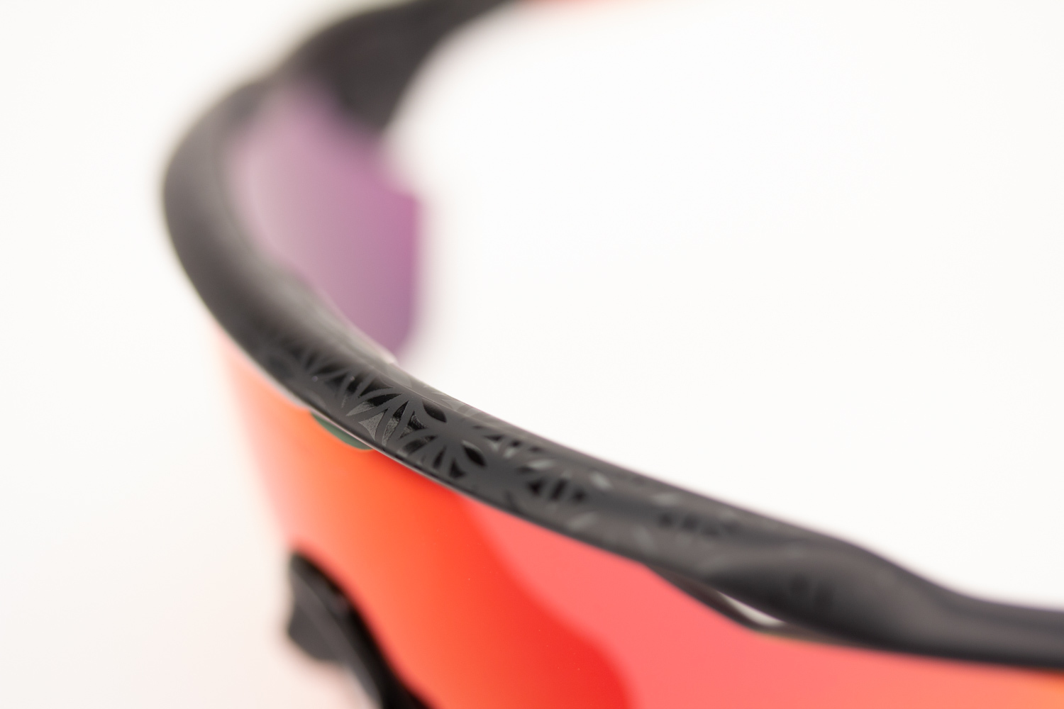 フレーム前面のカーブを通常よりも強くつける事により、視界がさらに広くなると共に、よりスポーティーなイメージを演出してくれるオークリーならではのデザイン。
