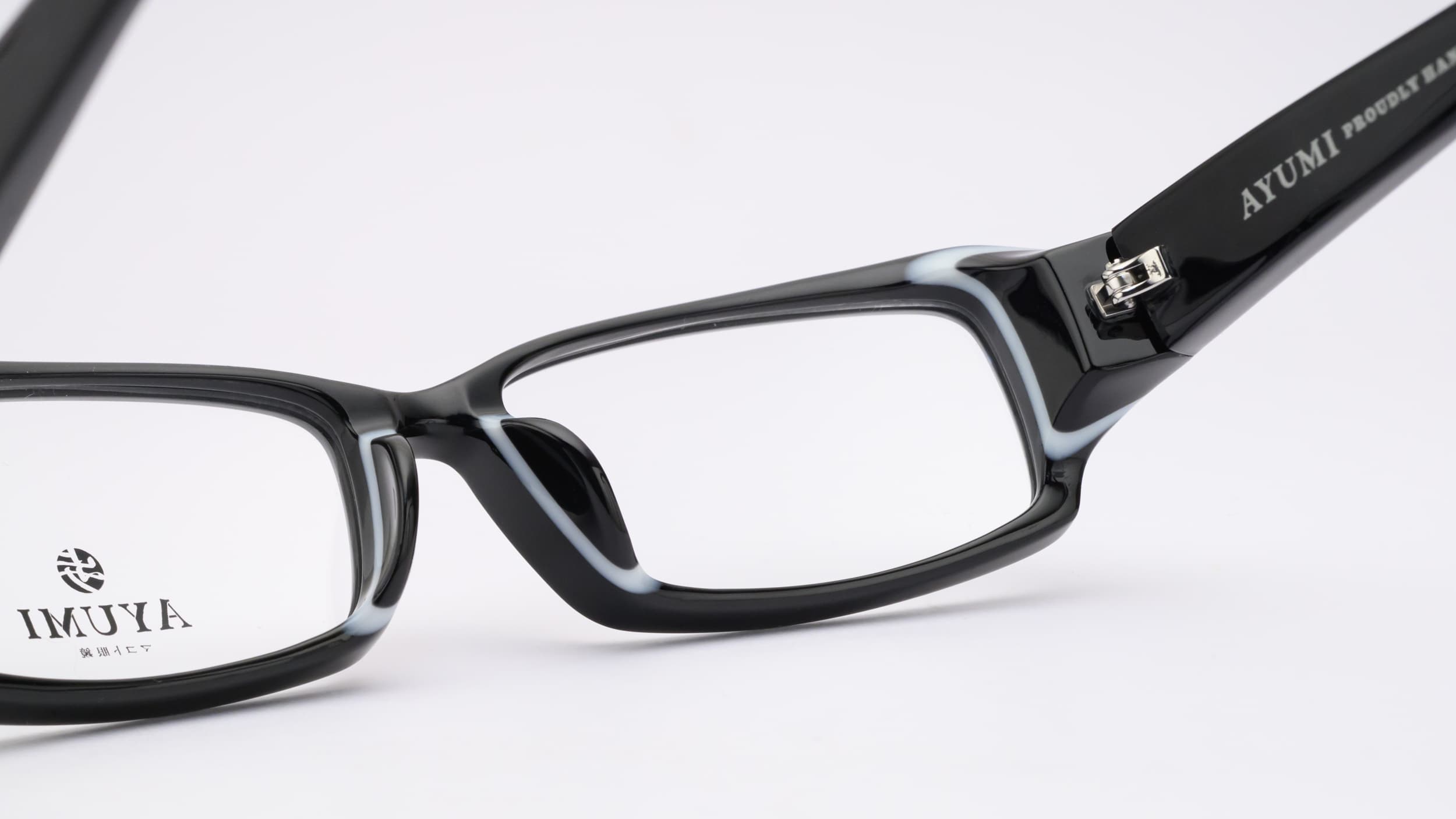 プラスチック枠の中で、形状変化に強いセルロイドを使用し、職人の手で1本1本削られ磨き上げられる日本を代表するハンドメイド・アイウェア『 AYUMI 歩 』。一日でも永くかけ続けて欲しい。そんな職人の想いが込められた眼鏡、それが「AYUMI 歩」です。