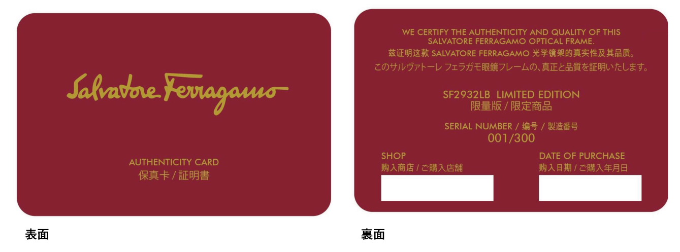 パッケージに含まれている、製造番号が印刷されたオーセンティシティーカードです。正規販売店にてご購入頂いたお客様に特別な経験をご提供するカードです。