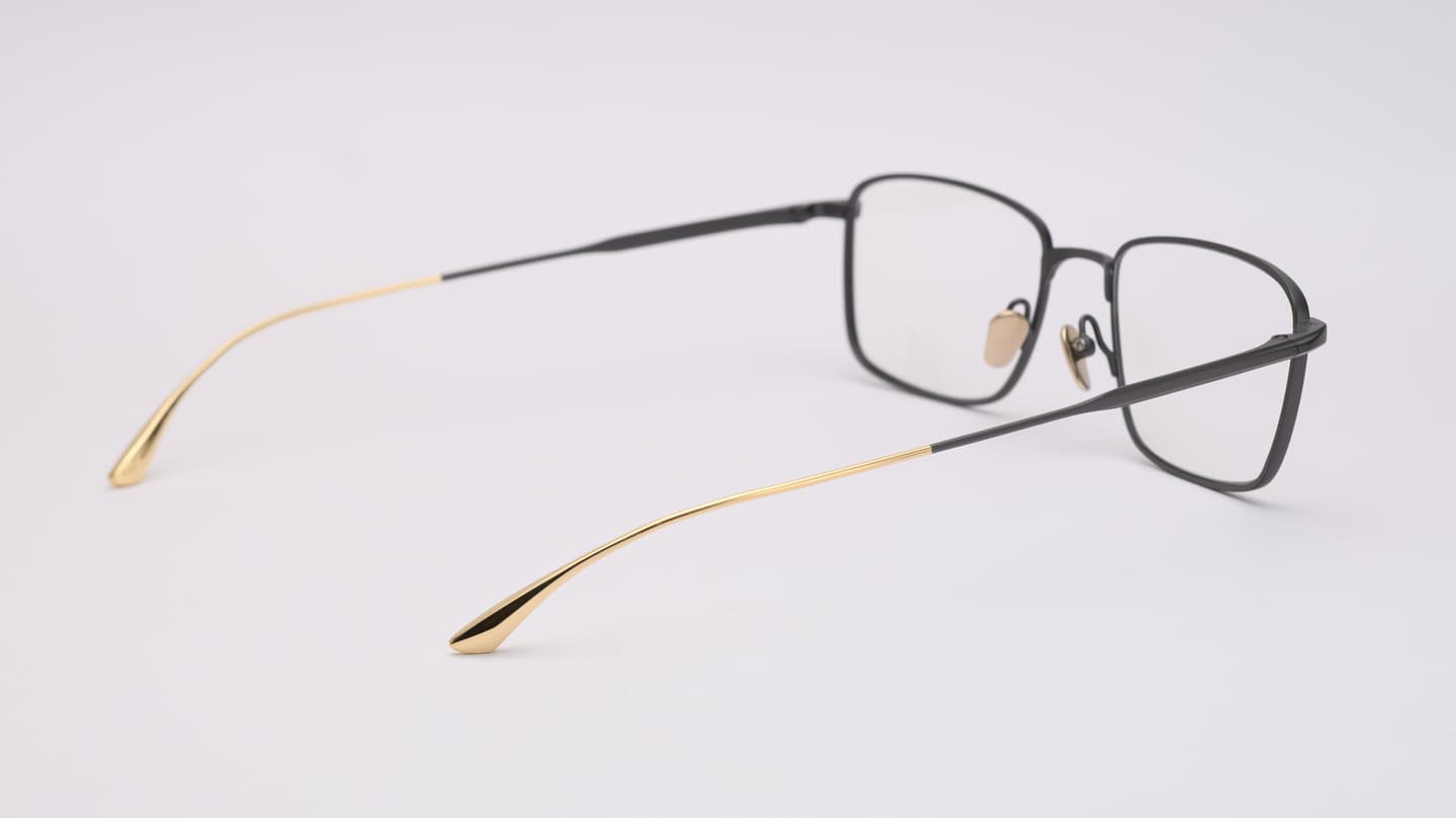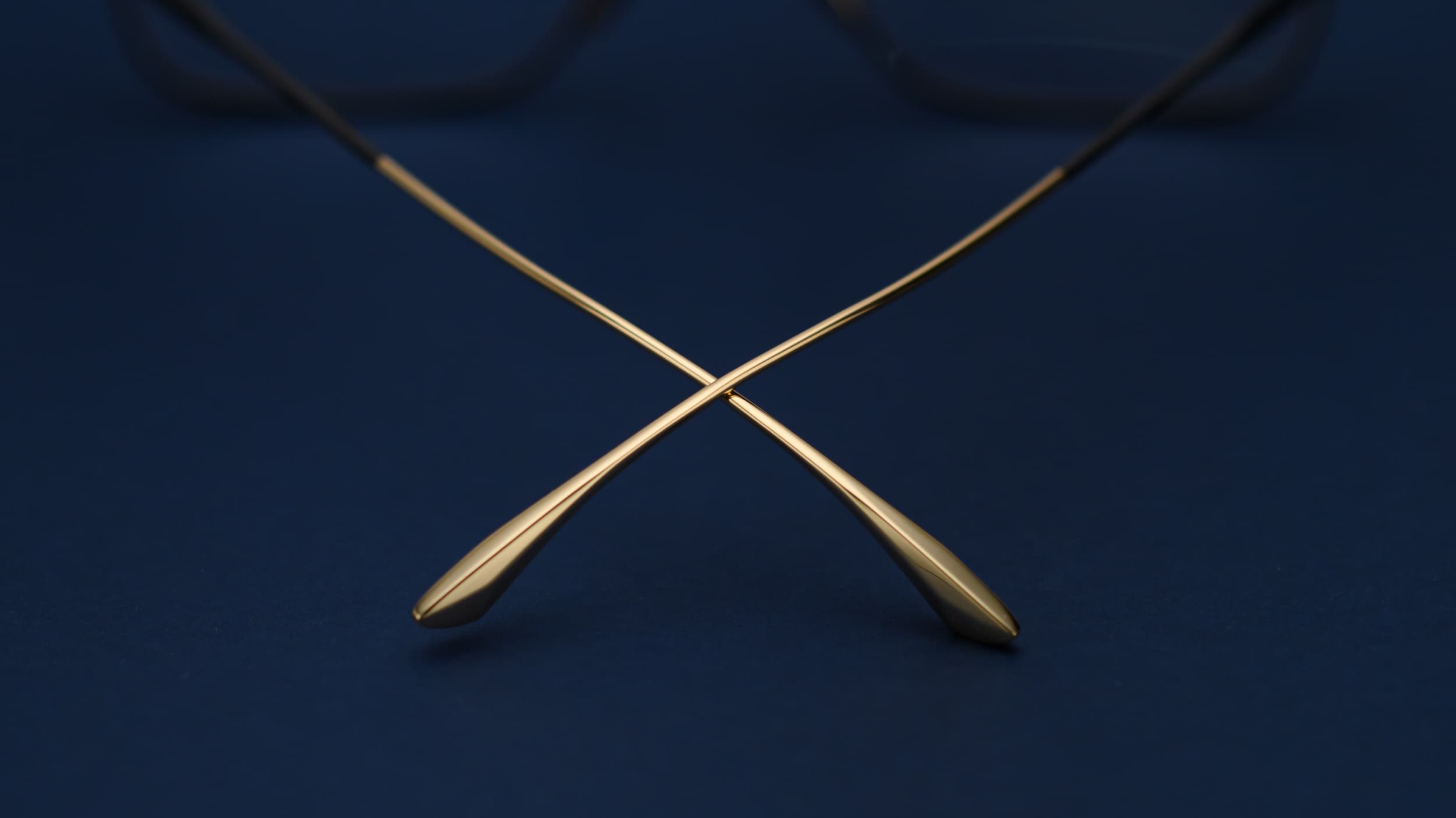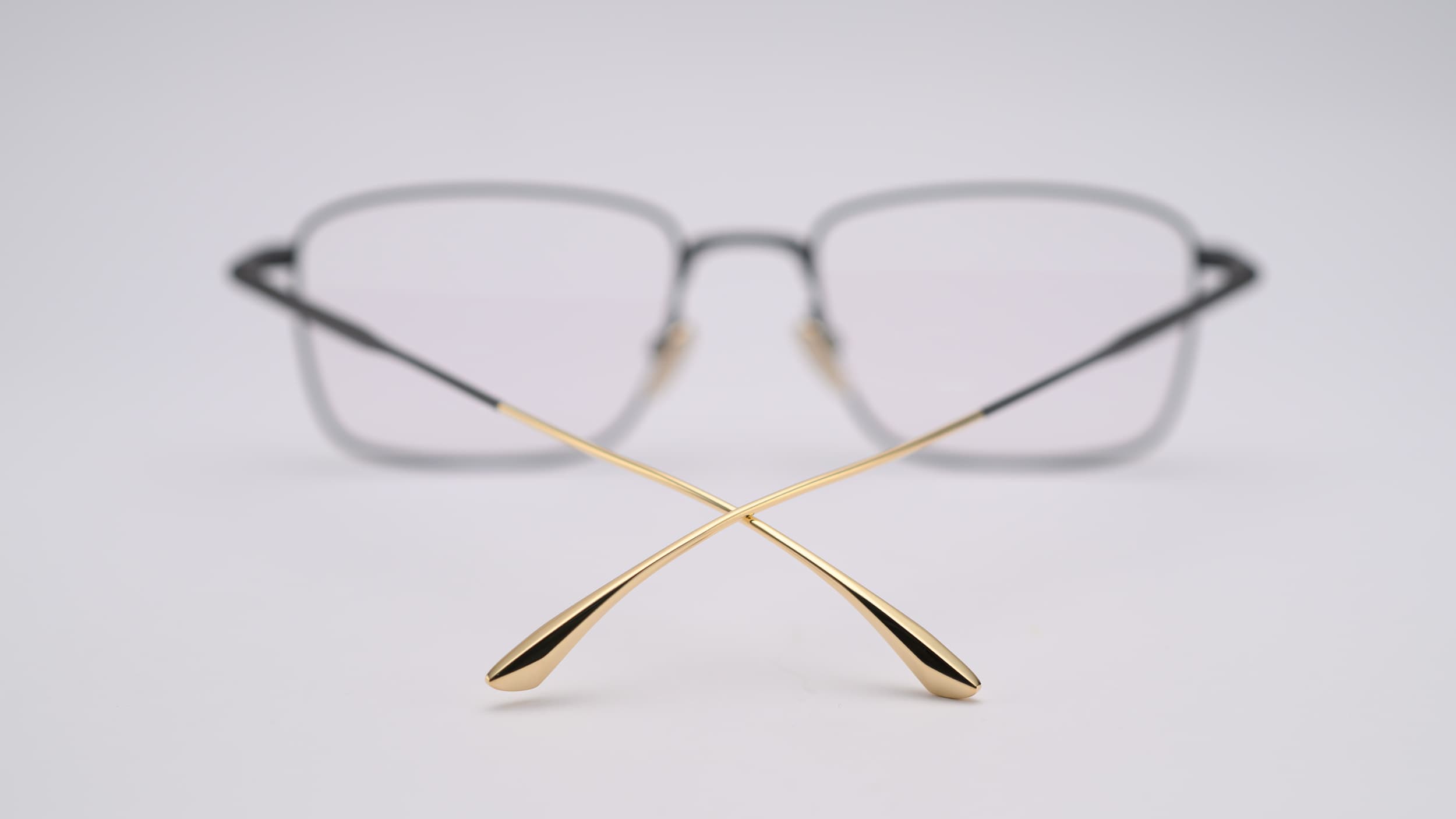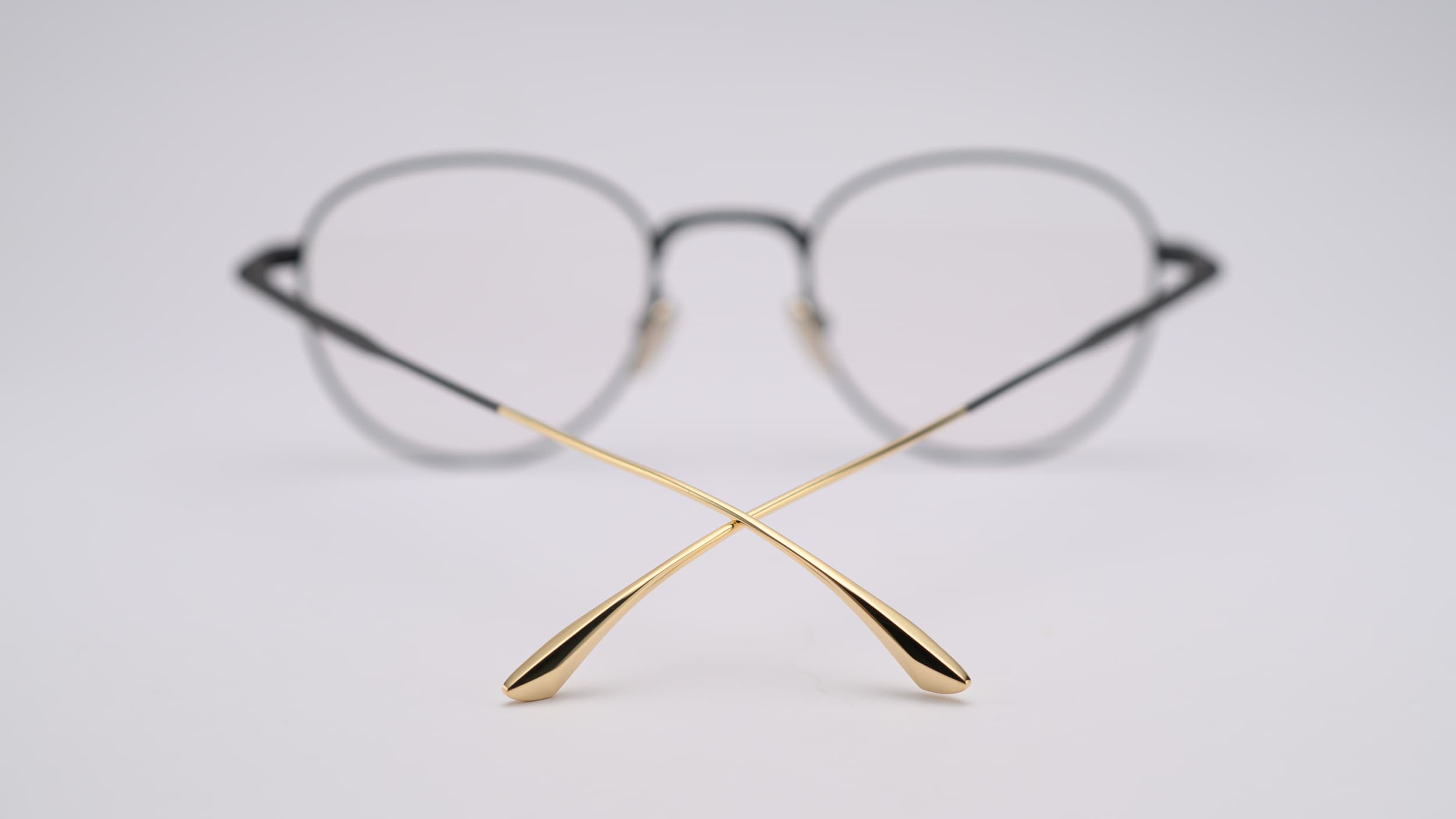 眼鏡の製造は時計と同じく分業制が発達し、工程ごとに専門メーカーが担うのが一般的です。福井県、特に鯖江市周辺には数多くの眼鏡関連メーカーが集積し、現在では国内生産の約90%以上を支えています。その中にあって増永眼鏡は、金型製作からプラスチック枠の研磨、チタンをはじめとする金属加工、メッキや蒸着に至るまで、ほぼすべてを自社で完結させる、稀有な存在です。そして、この「Edition 120th」にも、その技術の象徴とも言える、チタンとK18 Goldを極めて小さな接点で接合する高度な技術が用いられています。