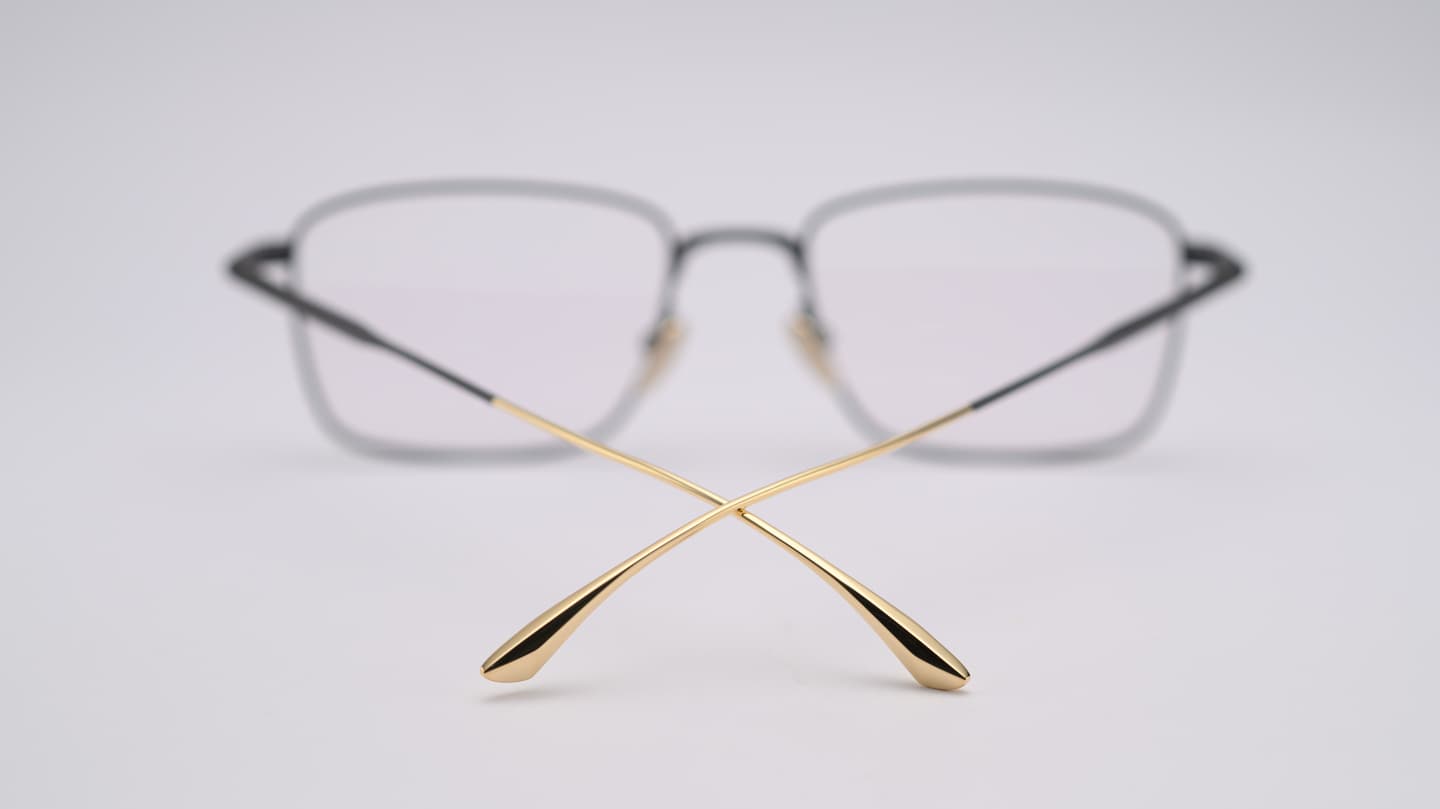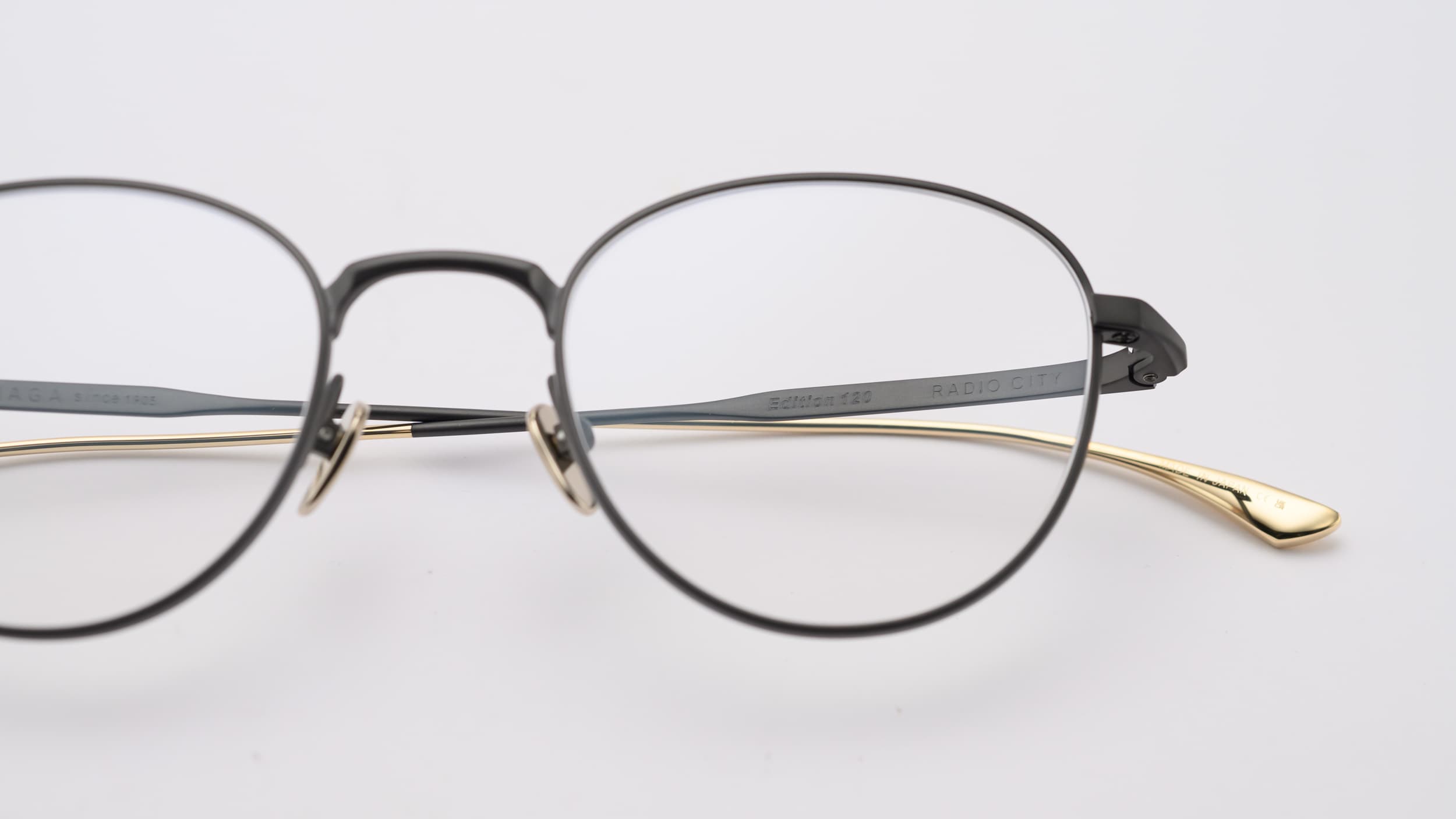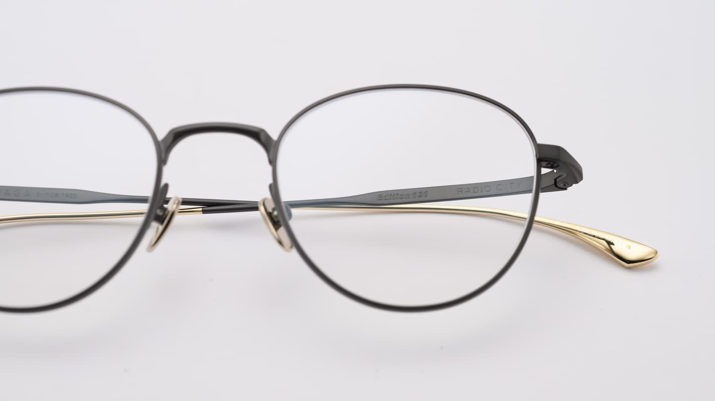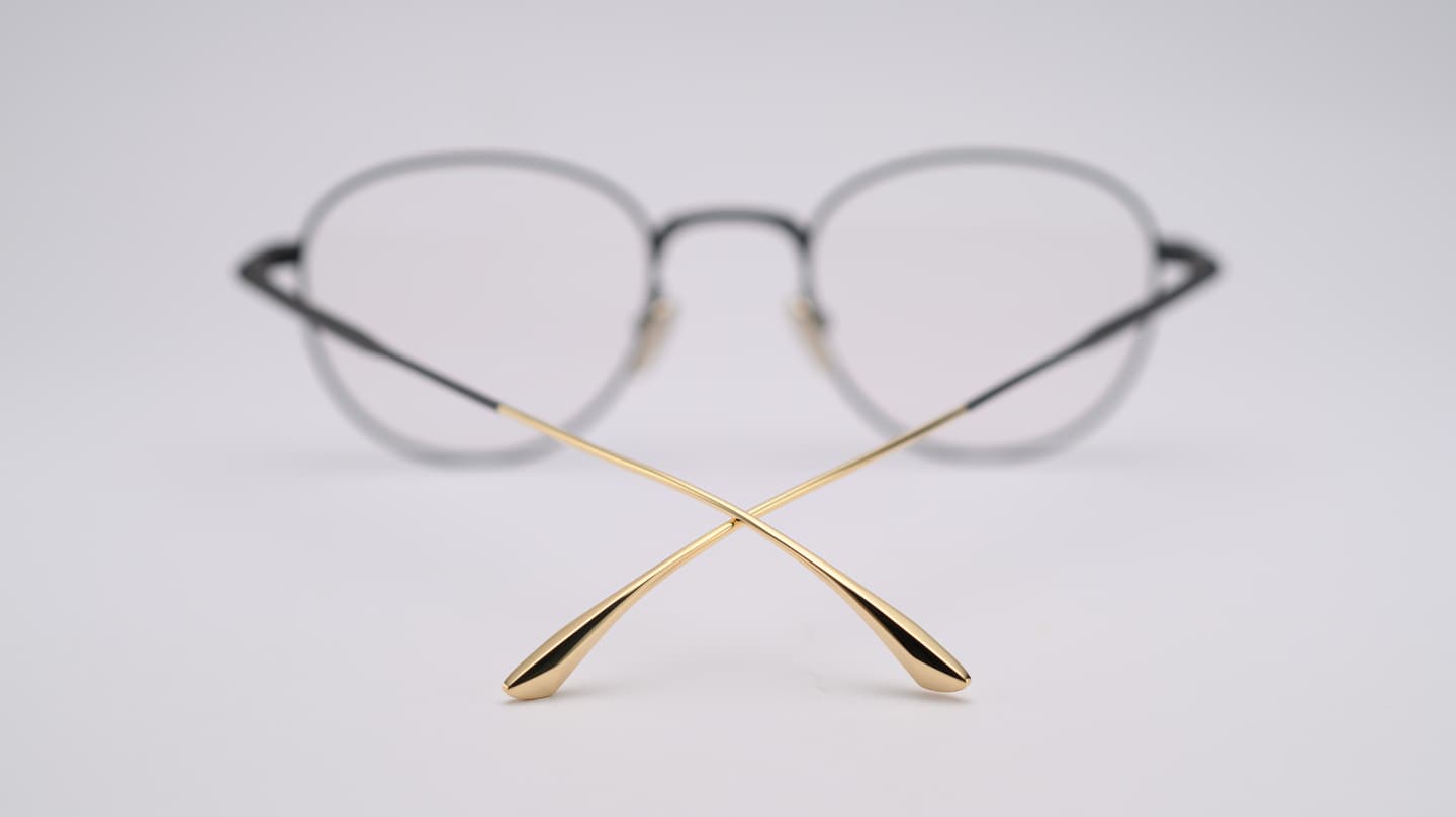 眼鏡の製造は時計と同じく分業制が発達し、工程ごとに専門メーカーが担うのが一般的です。福井県、特に鯖江市周辺には数多くの眼鏡関連メーカーが集積し、現在では国内生産の約90%以上を支えています。その中にあって増永眼鏡は、金型製作からプラスチック枠の研磨、チタンをはじめとする金属加工、メッキや蒸着に至るまで、ほぼすべてを自社で完結させる、稀有な存在です。そして、この「Edition 120th」にも、その技術の象徴とも言える、チタンとK18 Goldを極めて小さな接点で接合する高度な技術が用いられています。