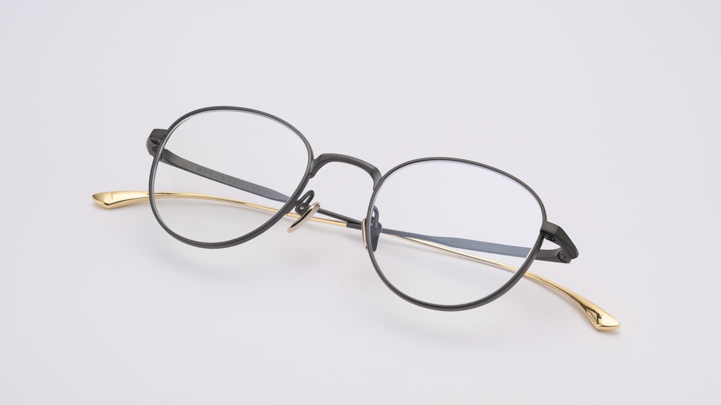 眼鏡にはさまざまな素材が用いられ、それぞれのメーカーに得意分野があります。しかし、素材や工程ごとに分業化が進んだ現在において、自社一貫で眼鏡づくりを行うメーカーはほとんど存在しません。その中にあって増永眼鏡は、金属のプレスを行う金型製作から、プラスチック枠の研磨、チタンなどの金属加工、さらにはメッキや蒸着に至るまで、ほぼすべての工程を自社で担っています。部門ごとに研究開発を重ね、最新の設備を導入しながら、高度で美しい加工を積み重ねてきた増永眼鏡。その技術の結晶とも言えるものが、「Edition 120th」にも静かに盛り込まれています。それが、チタンとK18 Goldという異なる素材を、極めて小さな接点で接合する技術です。非常に高価な素材を使用するうえ、手間と時間を要するため、この技術が用いられるのは、限られた特別なモデルのみ。さらに印象的だったのは、この接合技術について、あえて特許を取得していないという点でした。方法そのものはすでに公開されているものの、実際に完成させるには、接合時の温度や時間など、膨大な試行錯誤と経験の積み重ねが必要になります。ほんのわずかな接点に込められた、目に見えない技術と哲学。「Edition 120th」は、増永眼鏡が120年かけて培ってきたものづくりの姿勢を、静かに物語っているように感じます。
