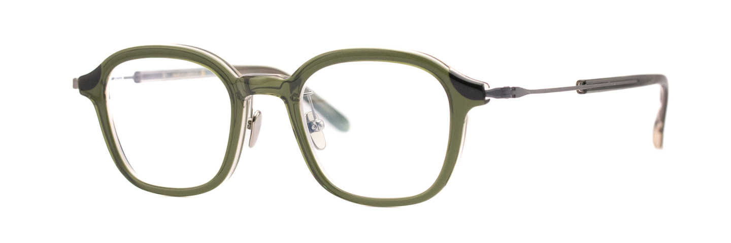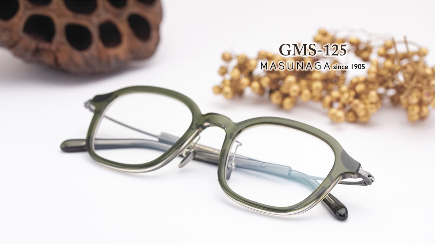 アセテートから透けて見えるメタル模様がアクセントの人気シリーズに、太めのウェリントンシェイプのGMS-125が登場しました。GMS-123やGMS-124に続くこの新作は、フォーマルな場面だけでなくカジュアルなシーンにもおすすめです。#19 BK/MOCAは横から見た際のブラック+ライトグレー+ブラウンのハーモニーが魅力的。一方、#38 GREENは深みのある落ち着いたオリーブグリーン。デミのような順応性があり、掛ける人を選ばないカラーです。