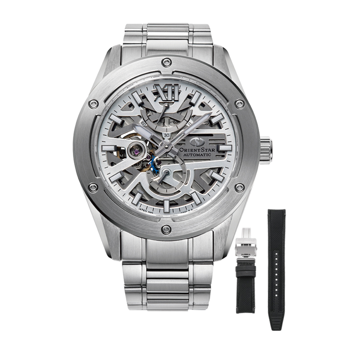 その他特徴:オリエントスタープレステージショップ限定、替えバンド (コーデュラバリスティックナイロン (黒))付き、自動巻き(手巻き付き)、パワーリザーブ表示機能、秒針停止装置付き、シースルーバック、24石