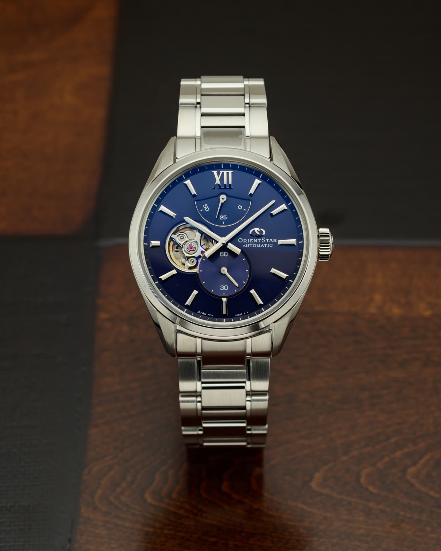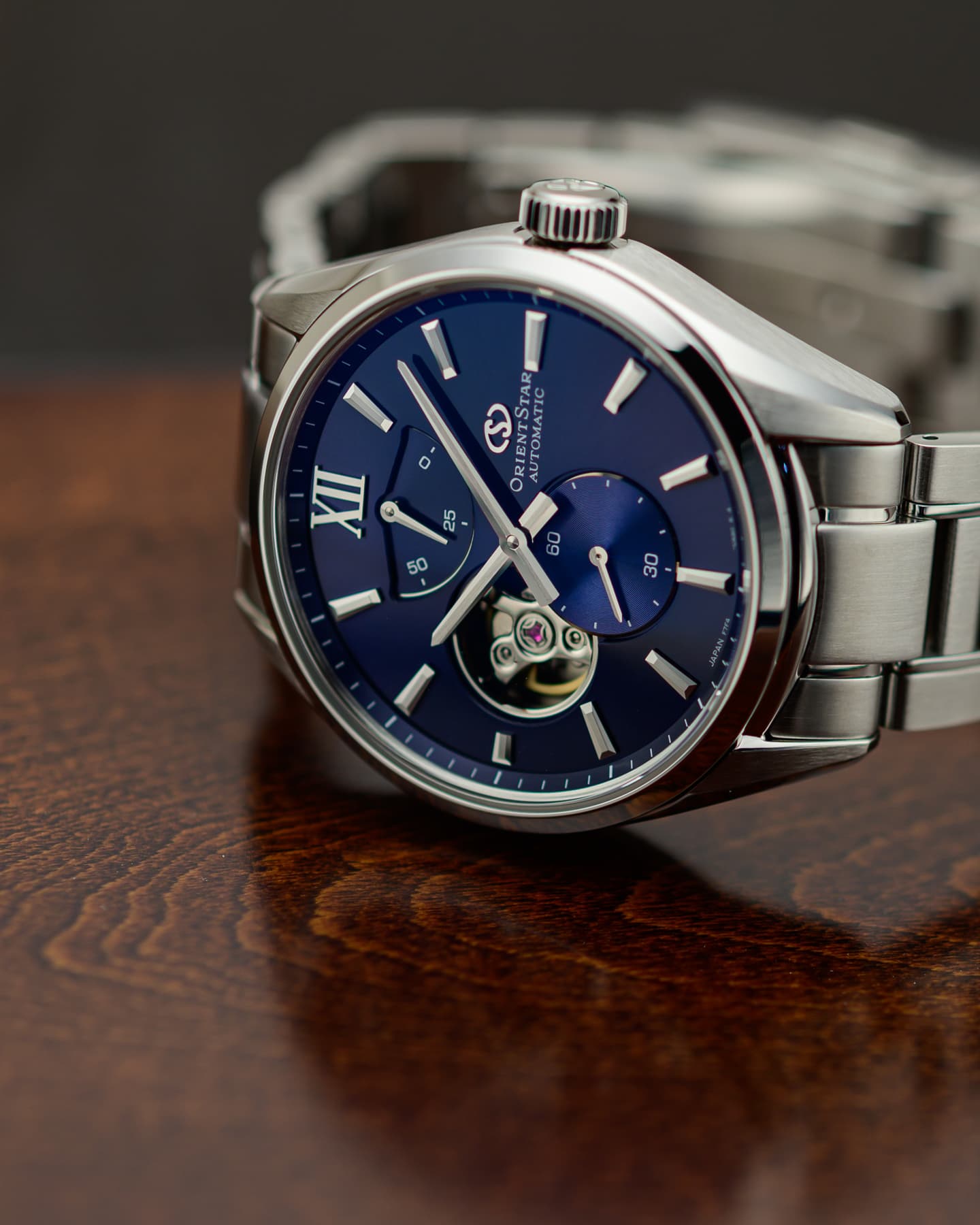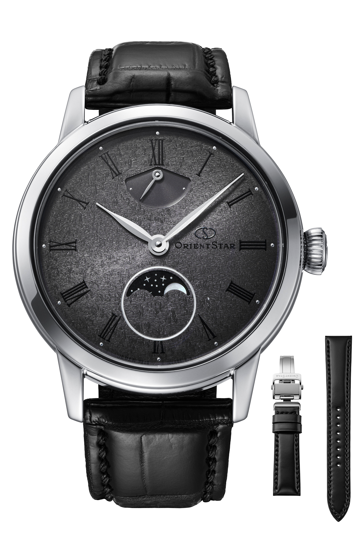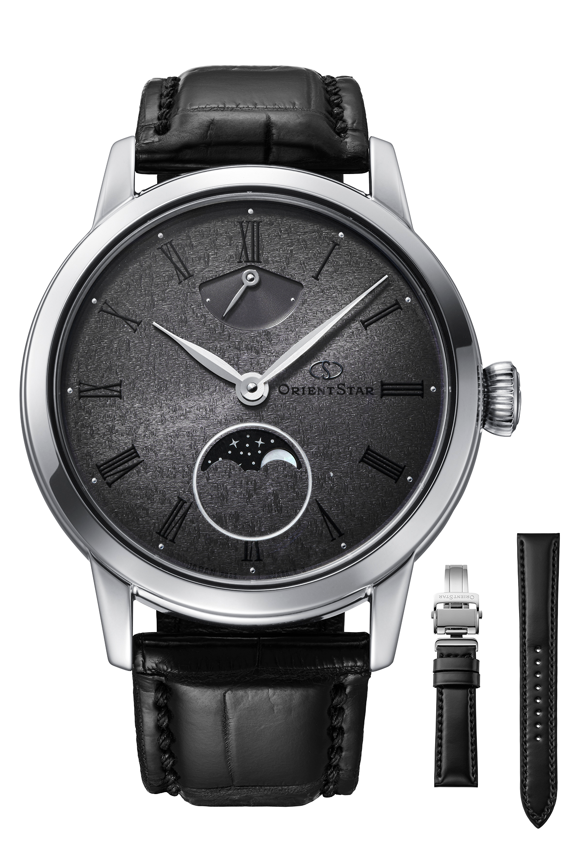 2026年に誕生75周年を迎える「輝ける星 オリエントスター」。その節目を前に発表された新作が、2025年10月ついに登場しました。秒針やカレンダーをあえて排し、時針と分針、そしてブランドの象徴であるパワーリザーブと月齢表示のみで構成した、シンプルで上品なフラッグシップモデルです。