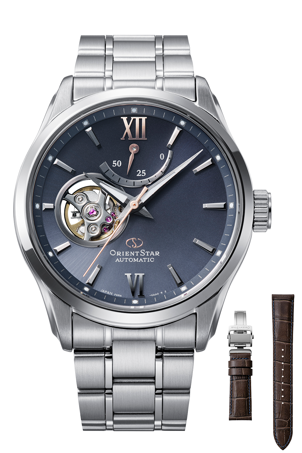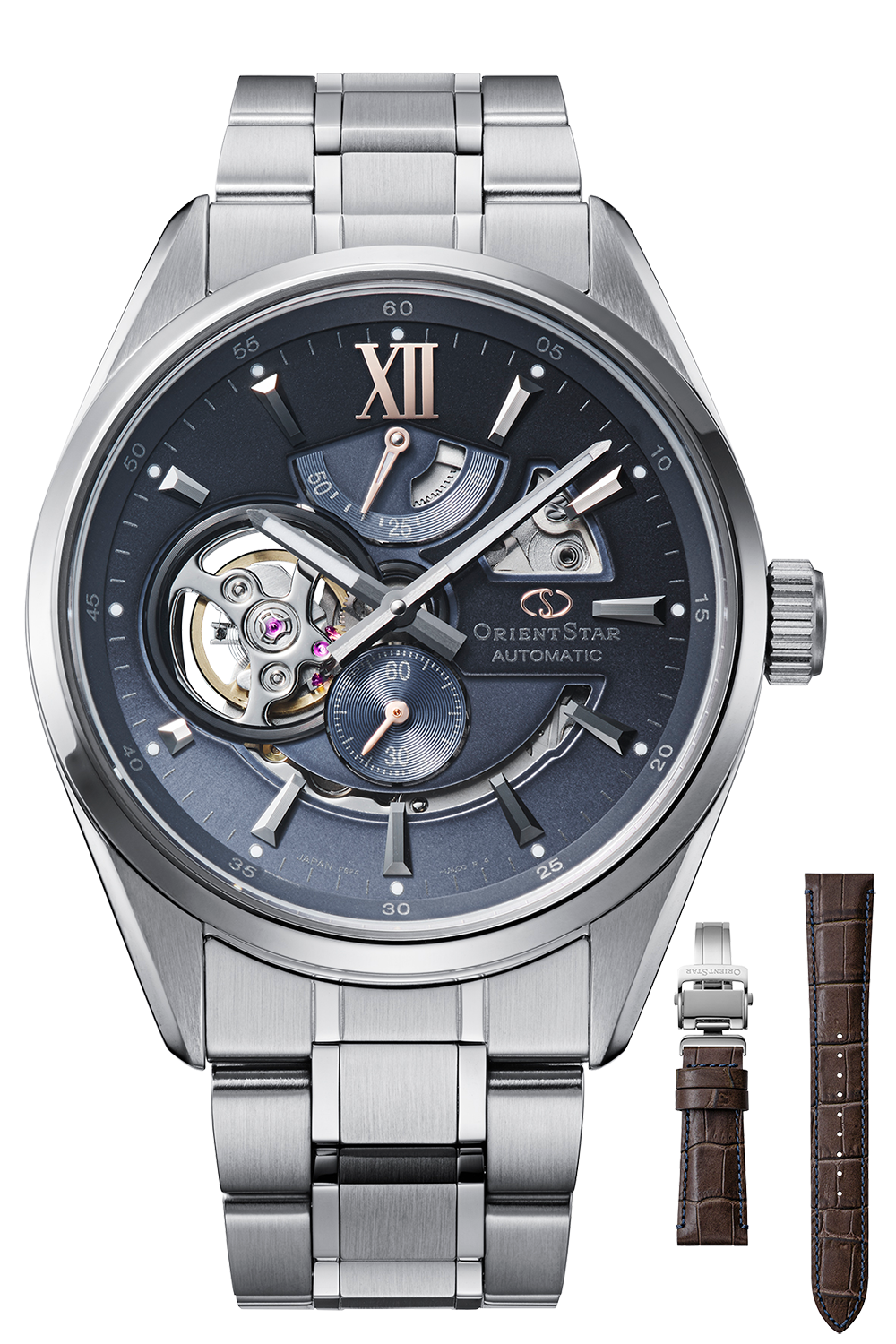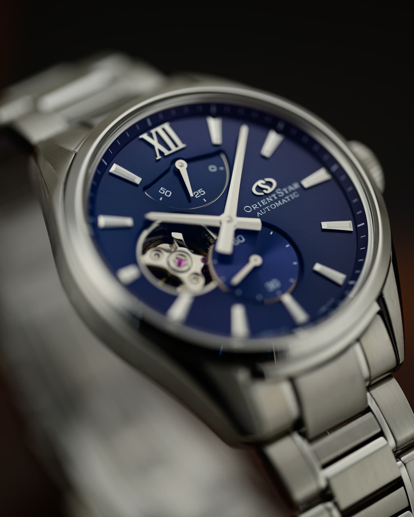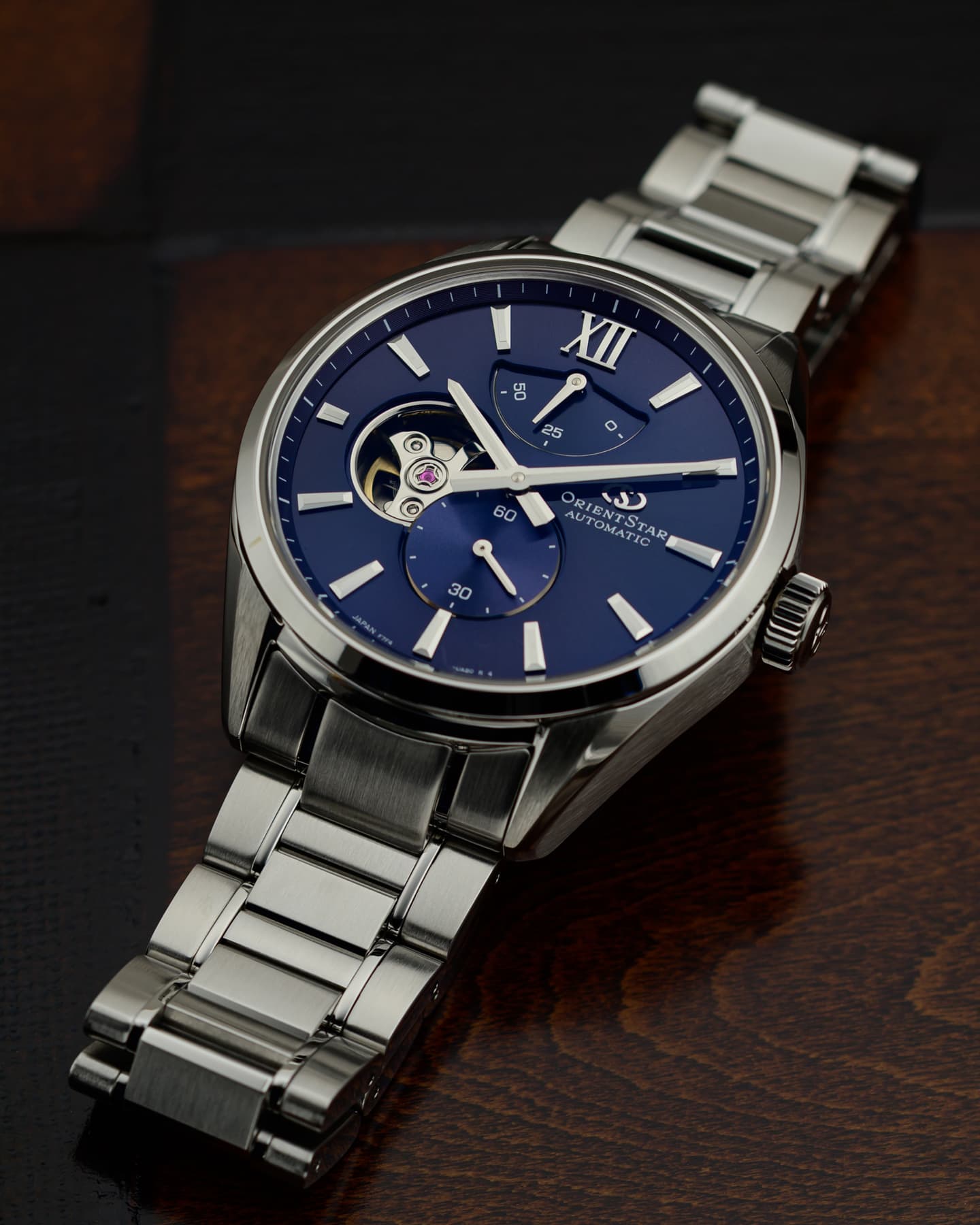 2026年に誕生75周年を迎える「輝ける星 オリエントスター」。その節目を前に発表された新作が、2025年10月ついに登場しました。秒針やカレンダーをあえて排し、時針と分針、そしてブランドの象徴であるパワーリザーブと月齢表示のみで構成した、シンプルで上品なフラッグシップモデルです。