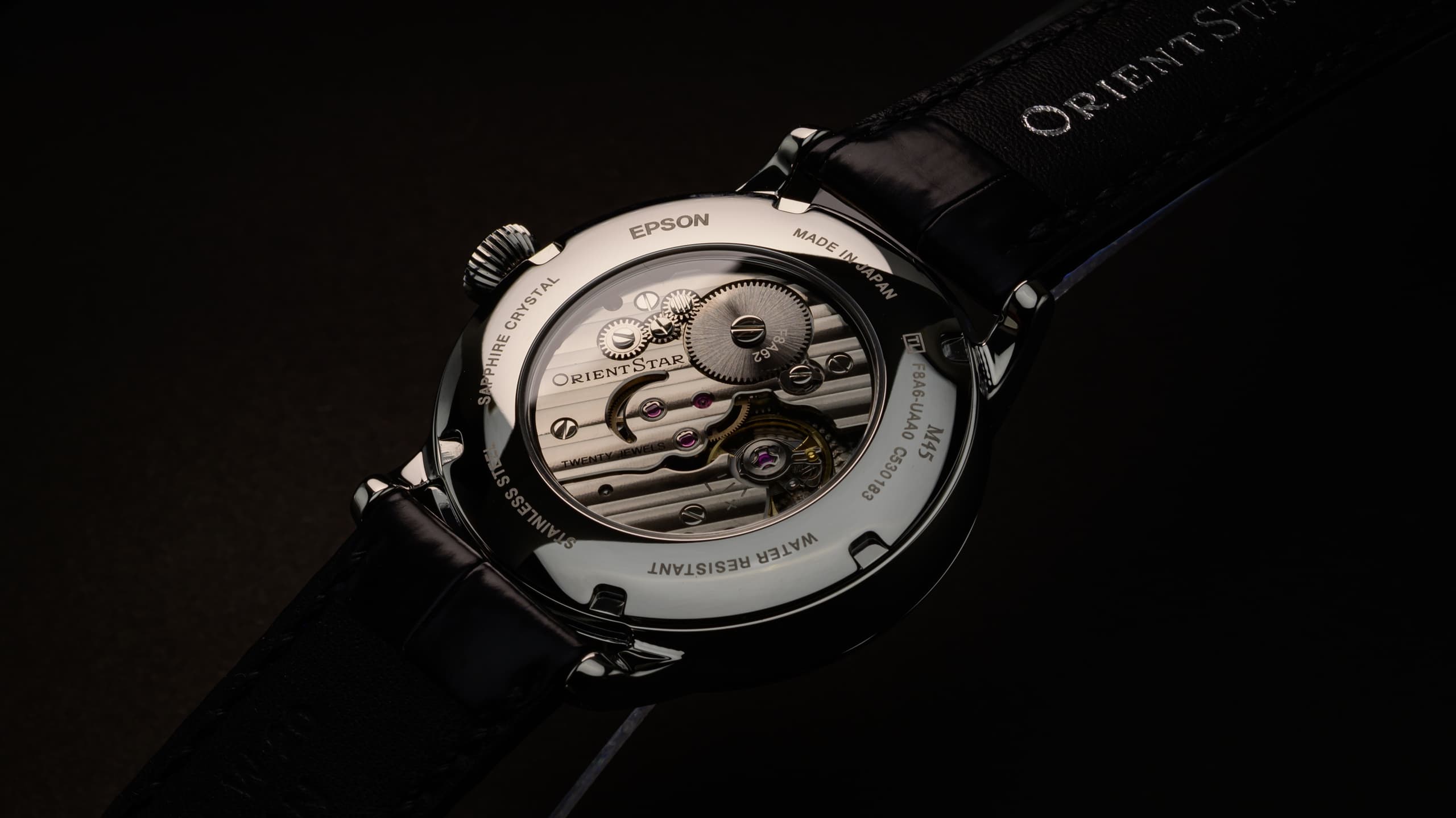 ケースサイズは従来より1.5mm小さくし、このモデルのために2年半の歳月をかけて新しく設計された新キャリバー:F8A62手巻きムーブメントは厚みも1.9mmの薄型化され、より理想的なサイズ感となりました。自社開発のシリコン製がんぎ車が組み込まれ、70時間の持続時間を実現。また星の軌跡をイメージした波目模様や三日月形の窓を設けているのも特長、見えないところへのこだわりが遊び心をかき立てるのと、職人による手仕事を深く感じることのできるタイムピースに仕上がっております。