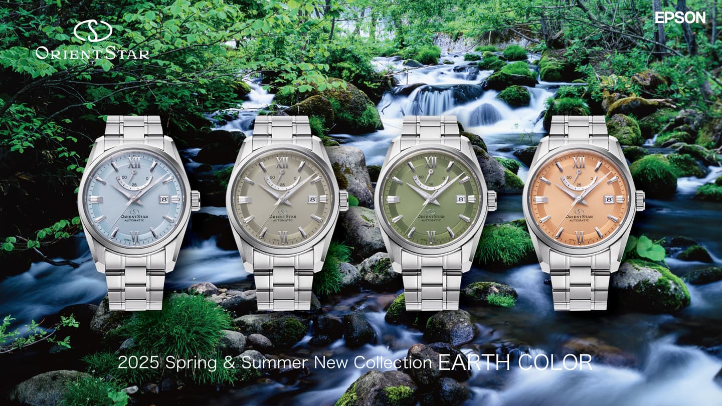 「Orient Star」といえばスケルトンなデザインが多くありますが、シンプルなスタンダードラインから今回登場したのがPOPなカラーが印象的なダイヤルのニューコレクション「アースカラー」。
