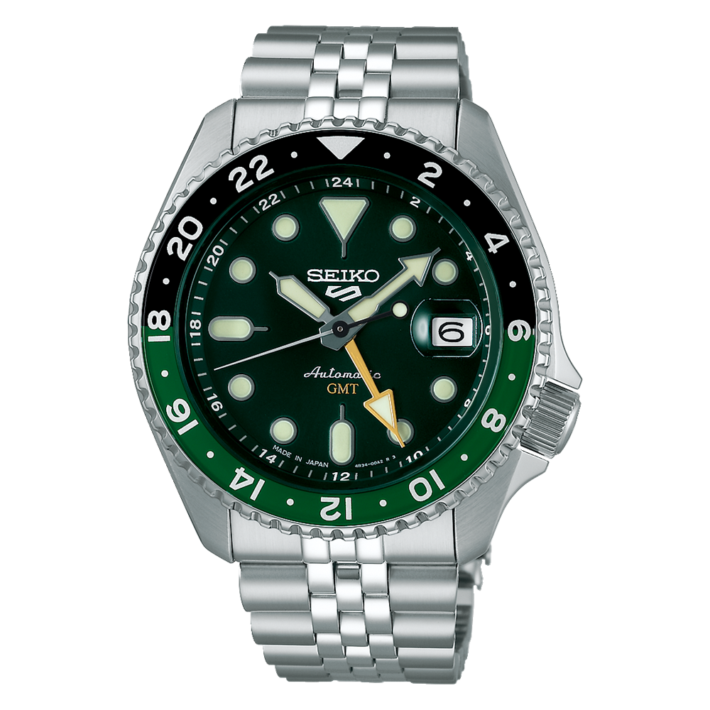 SEIKO 5 SPORTS SKXシリーズのGMTモデルは、2つのタイムゾーンを同時に追跡できる便利な機能を提供します。回転ベゼルを使用するとさらにもう一つ、3つのタイムゾーンが楽しめます。旅行者やビジネスマンだけではない使って楽しいGMTでこんな楽しみ方はいかがですか?